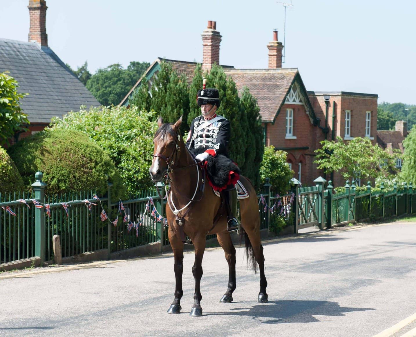 The photos show Charlie on parade this summer; two in London accompanying the two Sheriffs of the City of London who visited various Livery Companies to raise money for charity, and the third on solo guard duty at the opening of the Royal School’s 175th anniversary fayre where he met the Duchess of York.