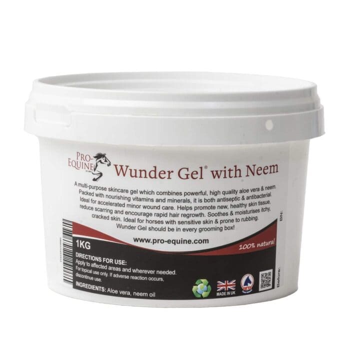 Wunder Gel is great to soothe, hydrate and encourage rapid hair re-growth. Neem is great for itchy horses/ponies who rub their manes and tails, rug rubs and problem skin care issues.