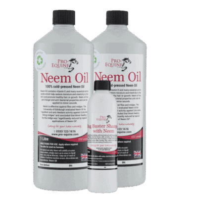Neem oil 1 litre for horses, get a free Bug Buster shampoo with this offer at Pro-Equine.